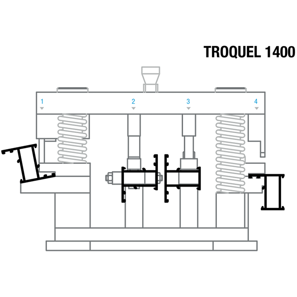 Las piezas que componen el troquel de la serie 1400, están fabricadas en dos materiales. Acero al carbono no aleado con un tratamiento superficial de pavonado para los componentes que no son sometidos a corte, y acero al carbono aleado templado para los elementos de corte.