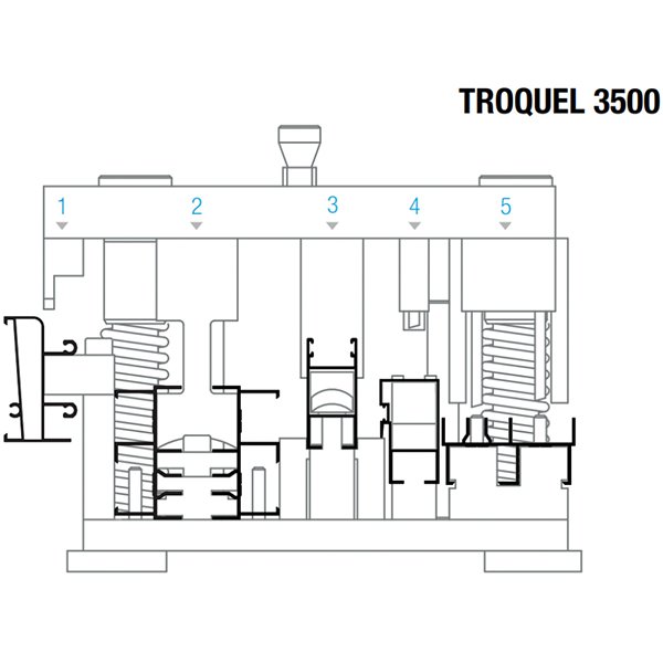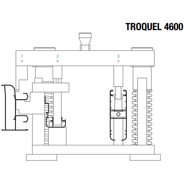 Las piezas que componen el troquel de la serie 4600, están fabricadas en dos materiales. Acero al carbono no aleado con un tratamiento superficial de pavonado para los componentes que no son sometidos a corte, y acero al carbono aleado temp- lado para los elementos de corte.
